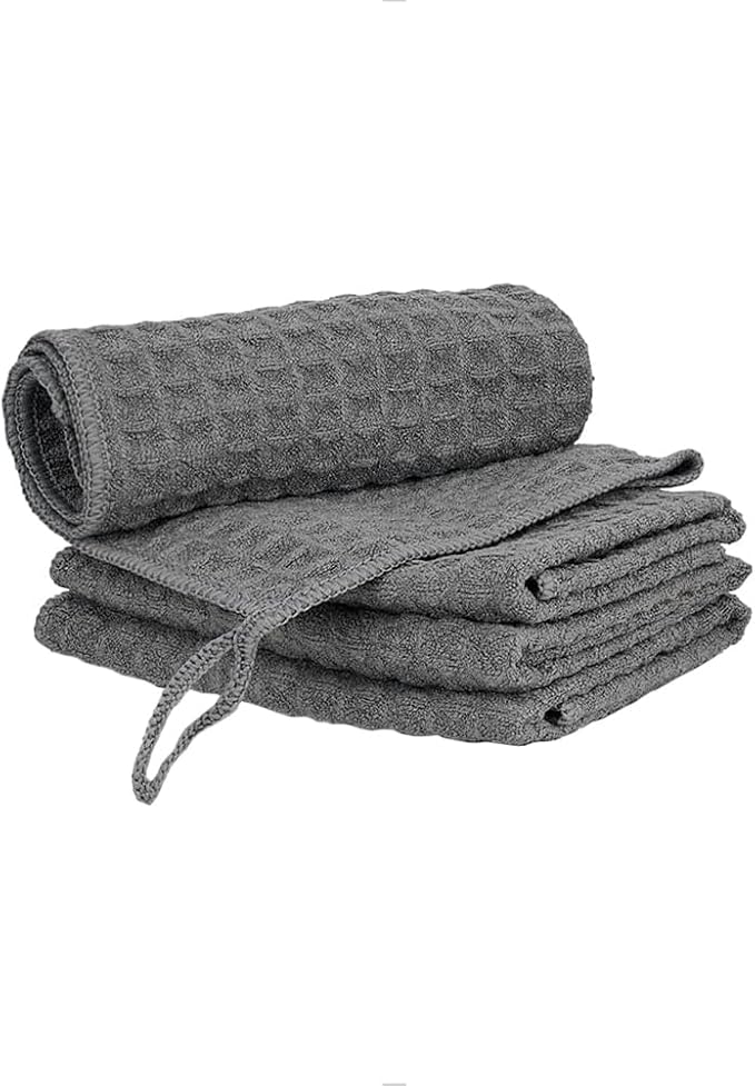 - FAST DRY AND DURABLE: Waffle weave design makes the cloth holds liquids quickly and dry fast, no need to worry about the bad smell. Machine wash with similar colors. Dark grey color micro cloth to coordinate with your home and kitchen cleaning.