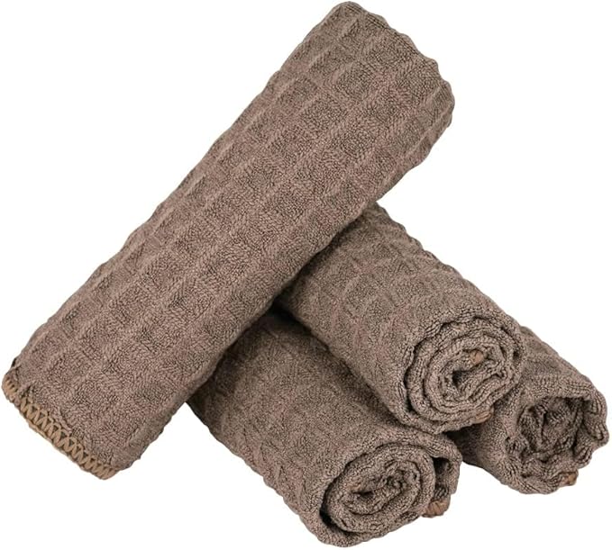 Barista Micro Cloth 4 Pack - watchget Microfiber Barista Cleaning Towels Coffee Cleaning Accessories for Espresso Machine, Steam Wand, Countertop, Kitchen Dish Cloth Waffle Weave Brown(12"x12")