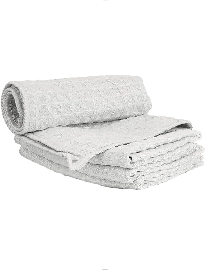 - FAST DRY AND DURABLE: Waffle weave design makes the cloth holds liquids quickly and dry fast, no need to worry about the bad smell. Machine wash with similar colors. Light grey color micro cloth to coordinate with your home and kitchen cleaning.