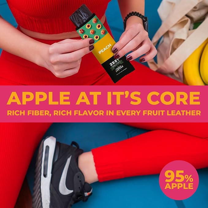 Fruit Snacks by Zest Delites, Dried Fruit Leather Bars, Healthy Snacks for Adults & Kids, Gluten Free Apple-Based Strips, Vegan, Peach, Plum, 0.88 oz x 10