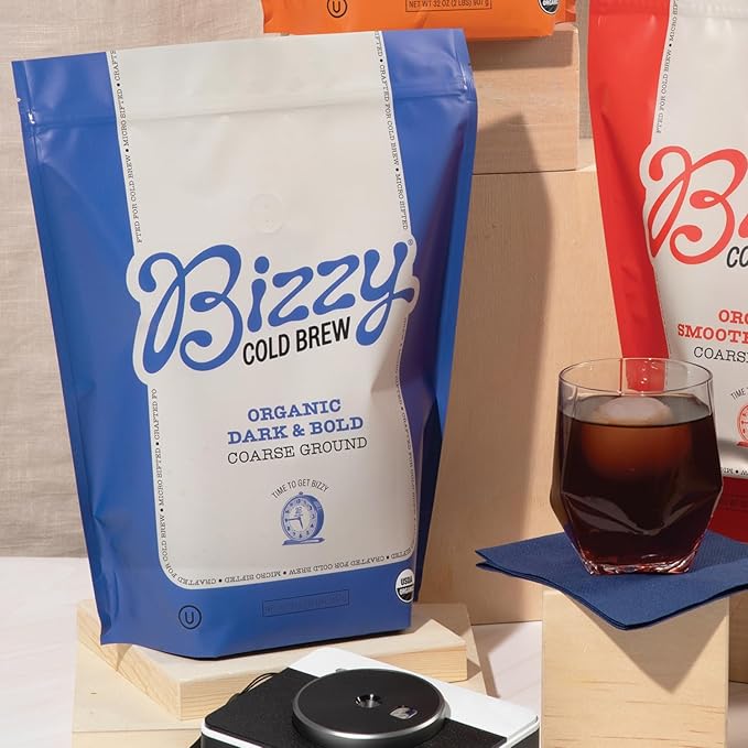 Bizzy Organic Cold Brew Coffee | Dark & Bold Blend | Coarse Ground Coffee | Dark Roast | Micro Sifted | Specialty Grade | 100% Arabica | 2 LB