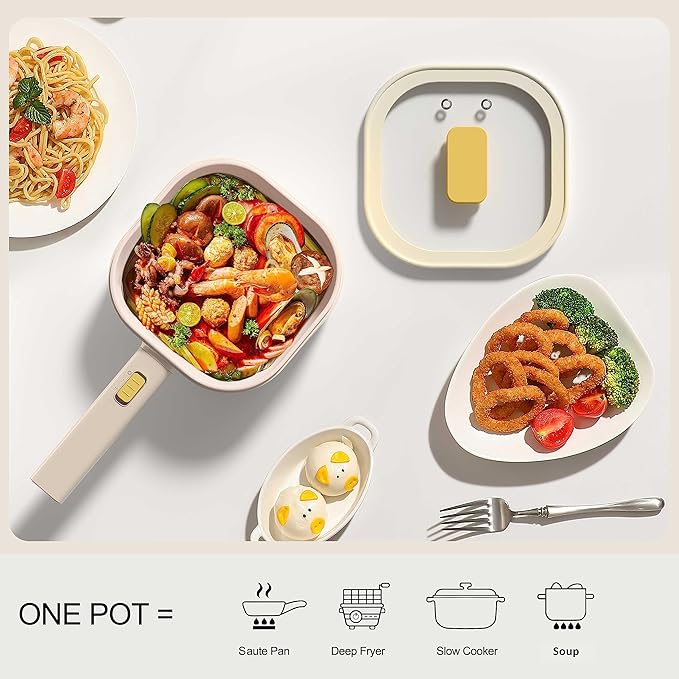 - Multifunctional Electric cooker - Dezin electric cooking pot, boasting a 7.4" diameter and a high rim of 2.4". This compact yet spacious pot provides the perfect way to cook foods for those living in dorm rooms or working in offices, allowing you to create delicious dishes with ease. Not only can you cook pasta with it, but you can also make a tasty meal, giving you the freedom to cook and sauté without a stove anytime you desire!