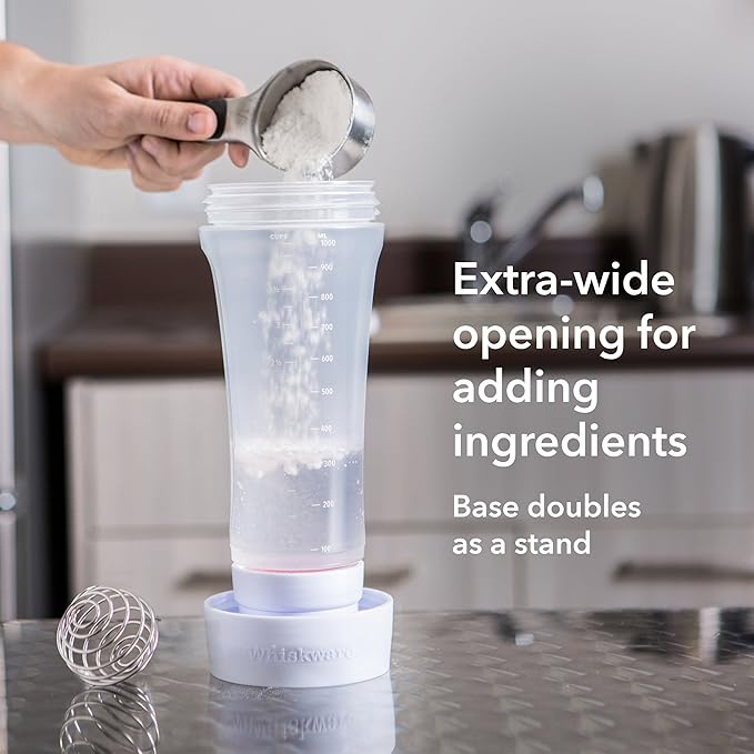 - BPA-free plastic|Easy clean up in the sink or dishwasher|Stainless steel blender ball replaces whisks and spoons|Measure up to 4 cups of batter|BlenderBall mixes ingredients as you shake|Removable bases doubles as a stand to easily add ingredients|Perfect for camping and make-ahead breakfasts at home|Heat-resistant (up to 440° F) soft silicone tip