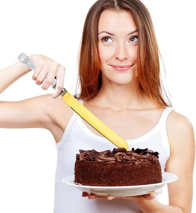 - 【Sophiscated Material】: Mainly featuring durable 410 Stainless steel material, the blades of this charming cake cutting and serving set won't rust, corrode or lose shine. which is both suitable for cake workshops or household, durable cleaning. The 4 inch-long faux crystal handles made of strong plastic Faux Crystal material, which look pretty elegant.