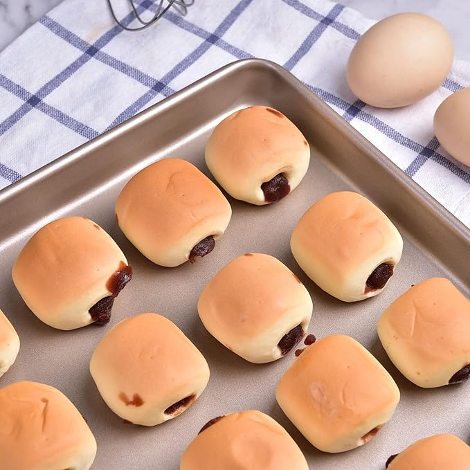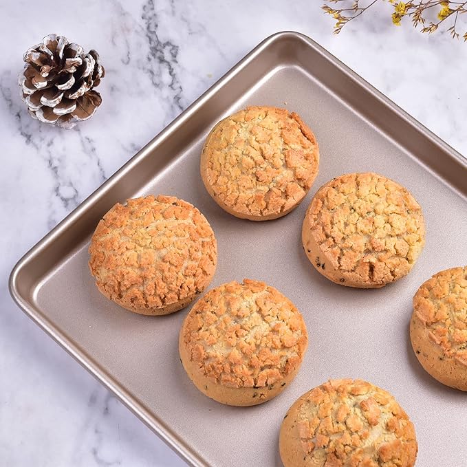 13-Inch Baking Sheet Pan, Non-Stick Carbon Steel Meat Bread Jelly Roll Pizzas Pastries Rimmed Cookie Sheet Pan for Oven Roasting 13" × 9" × 0.8" (Champagne Gold)