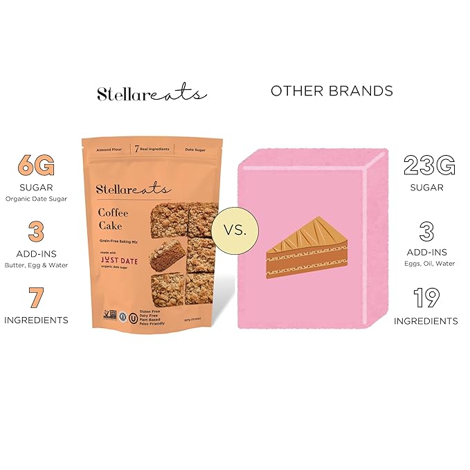 Stellar Eats Grain-Free Coffee Cake Baking Mix | Gluten-Free, Dairy-Free, Plant-Based, Paleo-Friendly, Naturally Sweetened with Date Sugar, Certified Kosher | Almond Flour-Based | 12.6 oz | 1 Pack