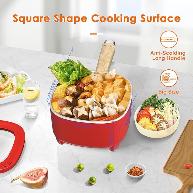 - Quick & Even Heating - Unique 360° annular heating base of Audecook hot pot cooker allows your food to heat up more quickly and evenly on this non-stick surface. In addition, the electric frying pan has improved overheating protection. Auto power off will be triggered once the pan exceeds 180°C, effectively protect the pot from overheating.