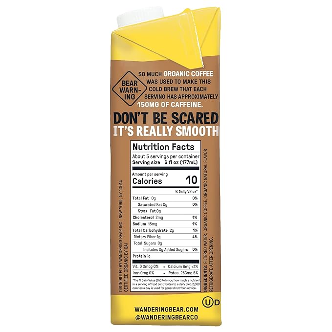 Wandering Bear Organic Cold Brew Coffee, Variety Pack, 32 fl oz (3pk - Vanilla, Caramel, Mocha) - Extra Strong, Bold, Smooth, Unsweetened, Shelf-Stable, Ready to Drink, Iced Cold Brewed Coffee Drinks
