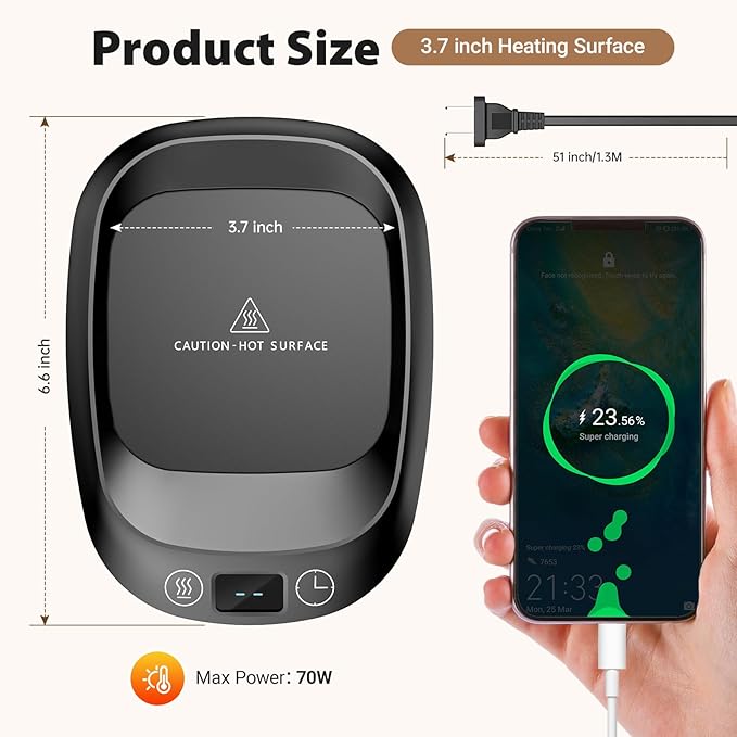 - Safe Coffee Warmer: This coffee warmer with usb ports supports 2/4/8 hours auto shut-off heating(standby but stop heating). It saves electricity and avoids many safety problems. You don’t have to worry about boil out the water. At the same time, the gravity switch will stop heating when the weight of your cup is less than 180g
