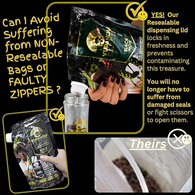 - If you're a fan of bold & flavorful spices, then you won't want to miss out on our Yupanqui organic black pepper corn not only is it guaranteed to be fresh with an exquisite aroma, but our unique whole peppercorns organic refill is designed to preserve its exceptional quality. You'll feel like indulging in the freshest & most aromatic premium peppercorns every time.