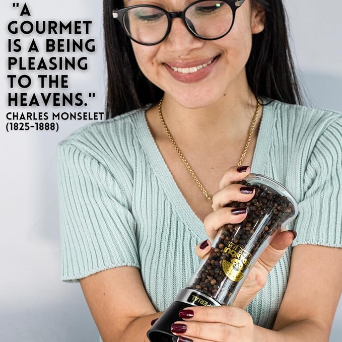 - Custom Grind: Adjustable ceramic rotor & adjustable coarseness salt and pepper mill sturdy and durable glass bottle easy to clean and maintain- Elevate your kitchen game: 7.5IN large peppercorn grinder refillable pepper mill - Mess-free Pepper Grinder: Spice Mill with ceramic blades works as a pepper mill or salt mill - Effortlessly salt and pepper grinder: professional grade heavy duty salt mill pepper grinder - Versatile: Glass pepper mill grinder & spice grinder with a durable core for fresh peppercorns salt, pepper and spices.