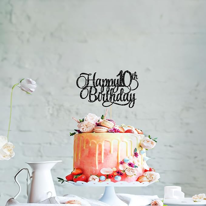 - 🍰【Package Included】: 1Pc Happy 10th Birthday Cake Topper. This Happy 10th Birthday cake topper is very nice and enough quantity for your use. Perfect for happy 10th birthday party!