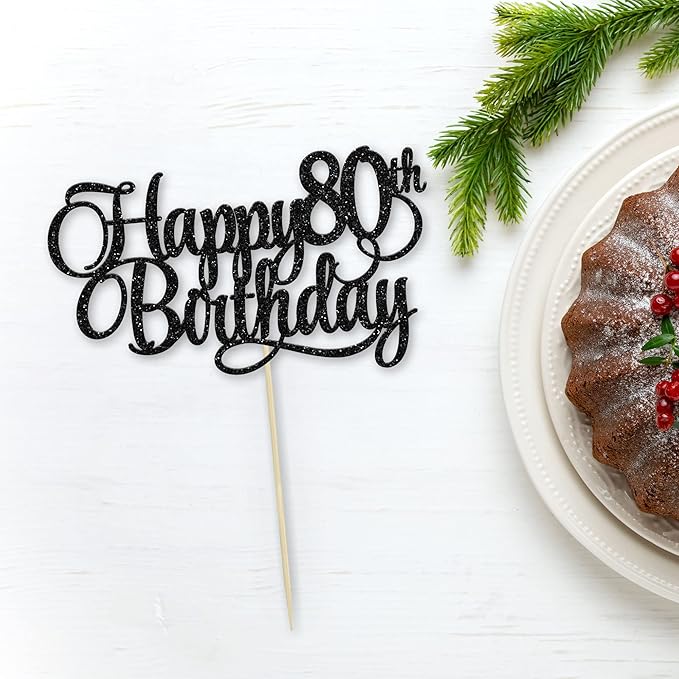 1 Pack Happy 80th Birthday Cake Topper Gold Glitter Number 80 Eighty Years Old Birthday Cake Pick Decoration For 80th Birthday Celebrating Anniversary Party Supplies