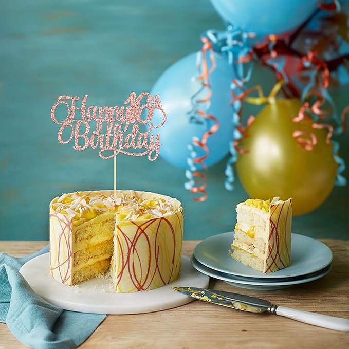 1 Pack Happy 16th Birthday Cake Topper Glitter Number 16 Sixteen Years Old Birthday Cake Pick Decoration for 16th Birthday Celebrating Anniversary Party Supplies Rose Gold