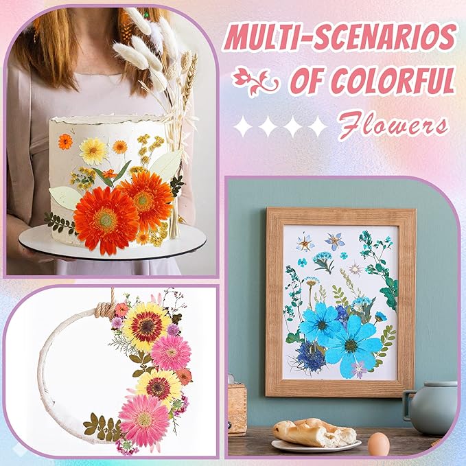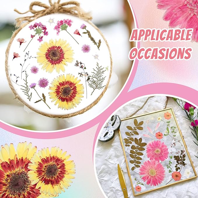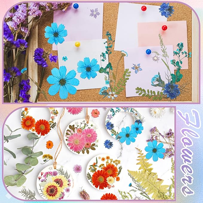 - Different Usages: natural pressed flowers for resin can be widely applied for nail, resin molds, Christmas gift, DIY jewelry design, resin phone case, note card, stationery, wedding invitations, envelopes, stained glass, bookmarks, candle makers, soap making, table decorations, scrapbooking, furniture and wood workings