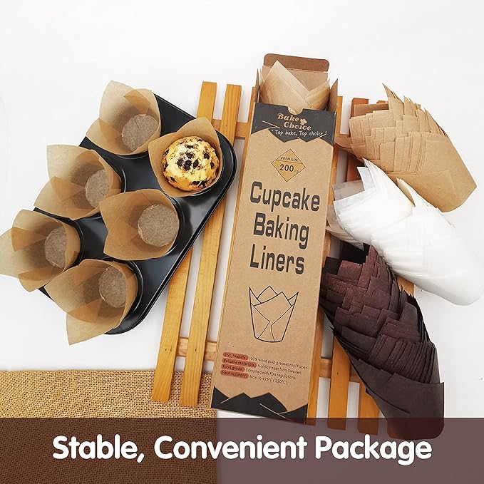 - Stable and Responsible Package: To prevent damages during shipping, Bake Choice baking liners come in a convenient, stable kraft paper box. There is a cardboard holder inside the box to maintain a perfect shape for the cups. We will do our best to ensure every single customer is getting the products in a perfect condition.