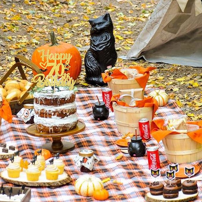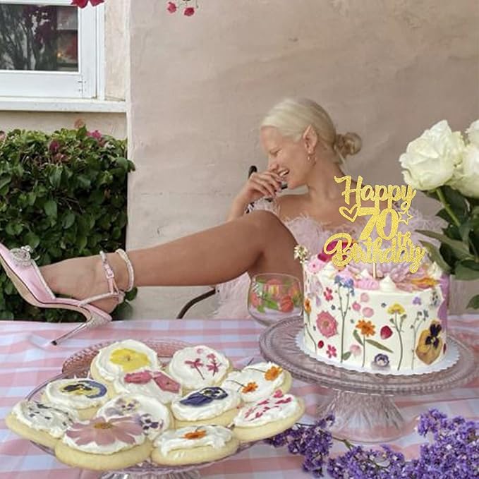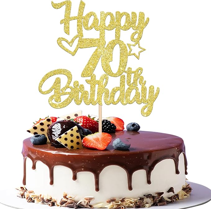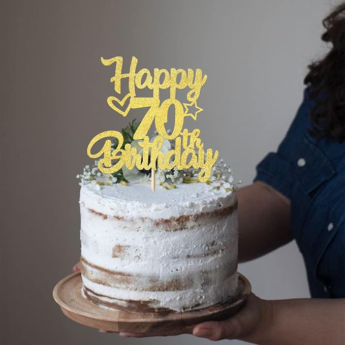 1 Pack Happy 70th Birthday Cake Topper Glitter Heart Star 70 Fabulous Cake Pick Birthday Sign Cake Decorations for Children 70th Birthday Theme Party Supplies Gold