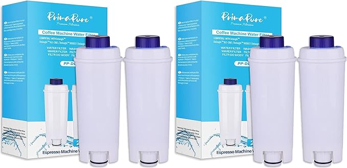 4-Pack PrimaPure Coffee Espresso Machine Water Filter Replacement For DeLonghi DLSC002, DLS C002, SER3017, 5513292811, ESAM, ECAM, ETAM Series
