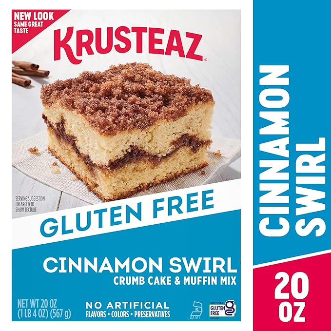Krusteaz Gluten Free Baking Mix, Cinnamon Swirl Crumb Cake & Muffin Mix, Gluten Free with No Artificial Flavors, Colors or Preservatives, 20 Ounce (Pack of 3)