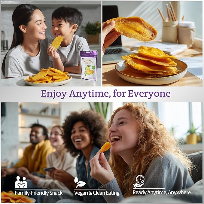 - LONG SHELF LIFE FOR CONVENIENCE ANYWHERE: Soft dried mango stays fresh for a long time without refrigeration, making it great for hiking, travel, office desks, school lunches, or everyday pantry stocking.