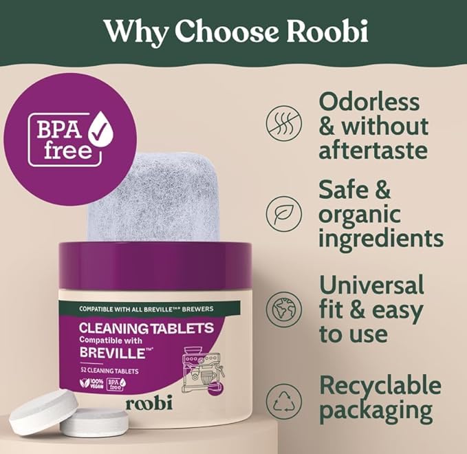Breville Compatible Espresso Machine Cleaning & Maintenance Kit. Includes 52 Breville Cleaning Tablets and 6 Water Filters. Carbon Neutral. 1 Year Supply.