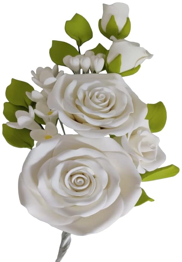 O'Creme Gumpaste Flower Spray, White Rose 4x6 - Edible Flowers for Cake Decorating - Flower Decorations for Cakes, Candy, Cupcake Toppers - Birthday Party, Wedding, Valentine's, Baby Shower