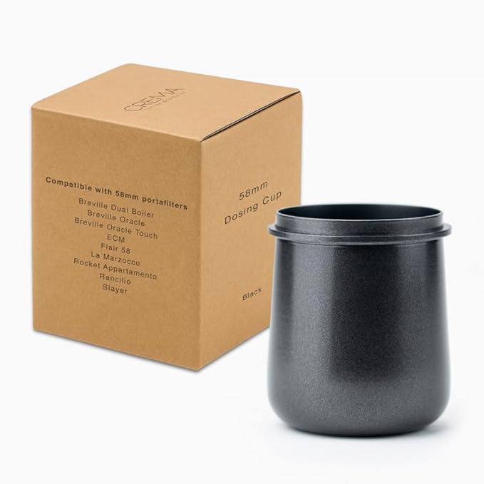 - PRECISION ESPRESSO ACCESSORY: The Crema Coffee Products 58mm Dosing Cup is thoughtfully designed for Breville portafilters, making it easy to weigh your coffee grounds and transfer them cleanly from grinder to portafilter.