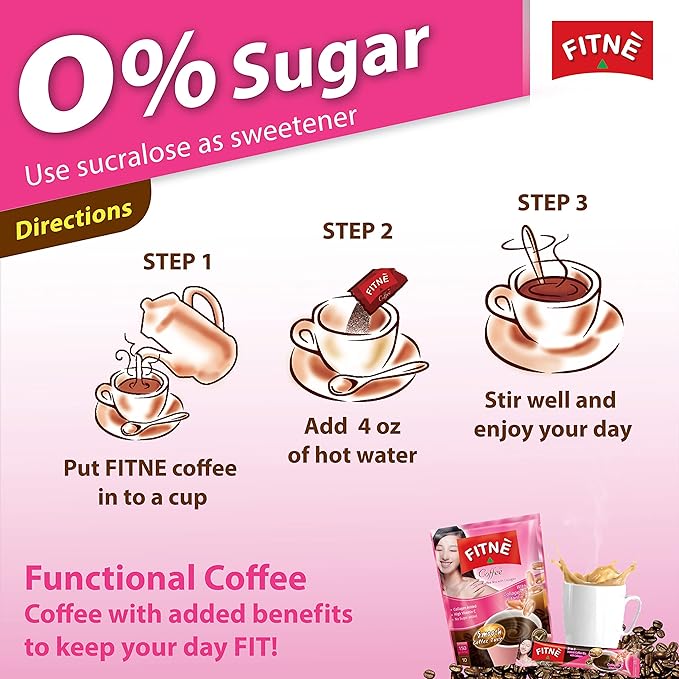 - COLLAGEN & VITAMIN C - FITNE coffee offers real natural hydrolyzed Collagen from fish to improve, strengthen, and repair your skin cell. The added Vitamin C is known for boosting immunity and helps collagen to perform even better!
