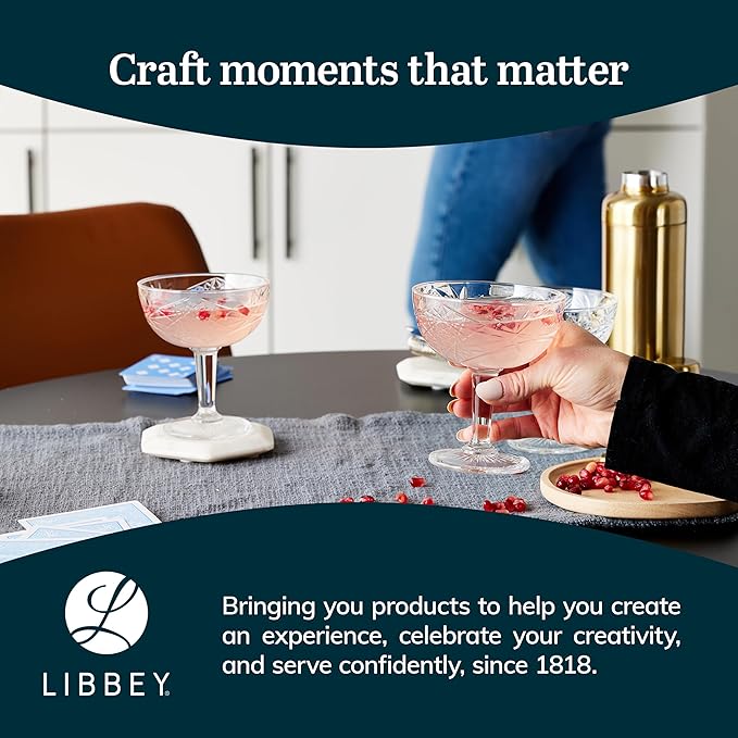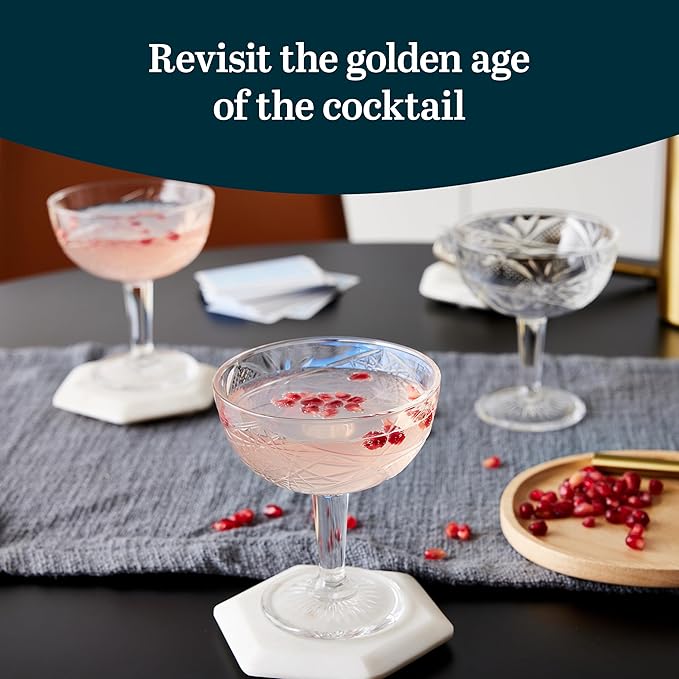 - Versatile Use : Designed for bar and restaurant use, these coupe glasses set of 4 offers durability and clarity elevating your cocktail presentation ; these vintage champagne glasses bring style and sophistication to your bar cart accessories