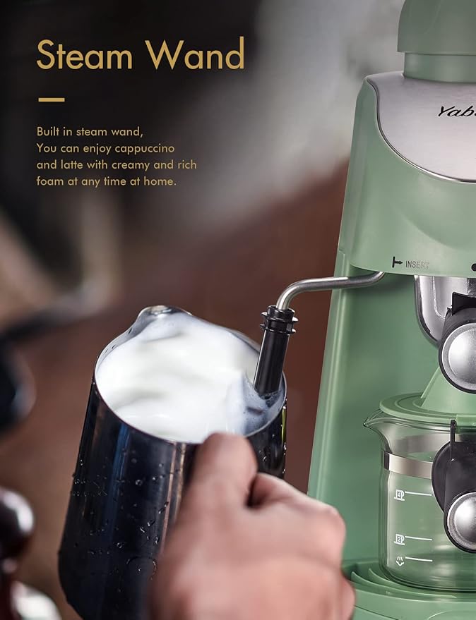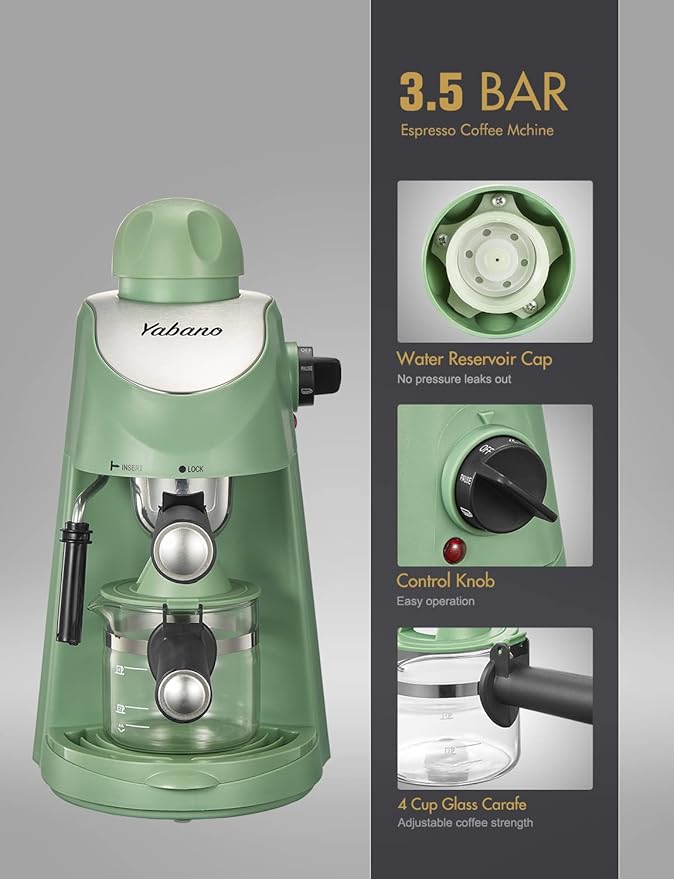 Yabano Espresso Machine, 3.5Bar Espresso Coffee Maker, Espresso and Cappuccino Machine with Milk Frother, Espresso Maker with Steamer (Green)