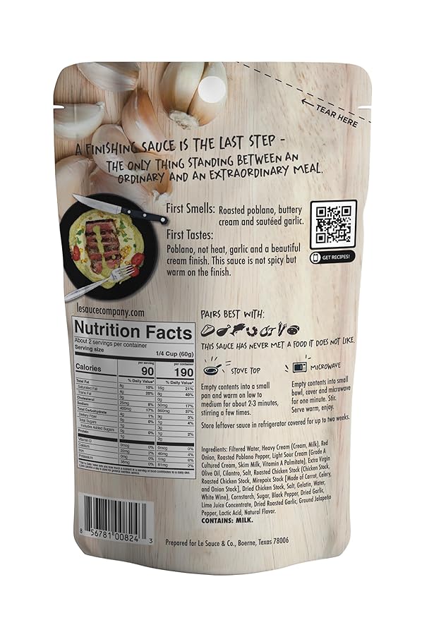 - Mouth Watering Finishing Sauces: Create exceptional meals with Le Sauce Finishing Sauces. Created from all-natural, whole-food ingredients like cream, onion, cilantro, basil, peppers, jalapeno, poblano peppers each creamy sauce is designed to turn ordinary dishes into memorable food experiences. We use only the freshest ingredients for our sauces, so you can feel good about the meals you’re serving to your family and guests.