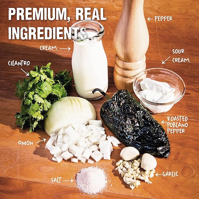 - It's made with high quality ingredients and spices like roasted pablano, dried poblano, buttery spicy cream and garlic, creating a savory smooth flavor for the family. This delicious finishing sauce will take your regular meal and turn it into something special with a poblano cream sauce. Drizzle over steak, chicken, fish, pork, vegetables and everything on your plate. Create an easy creamy dinner and real good enchiladas fast any night of the week.