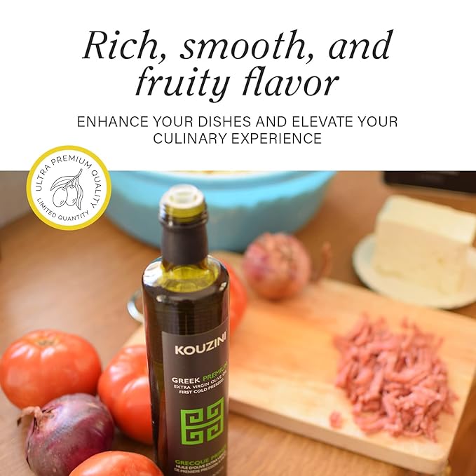 - Rich Flavor & Aroma: Kouzini Greek Premium Extra Virgin Olive Oil has a rich, fruity flavor with a hint of peppery finish and a fragrant aroma, perfect for enhancing your dishes and taking your culinary experience to new heights