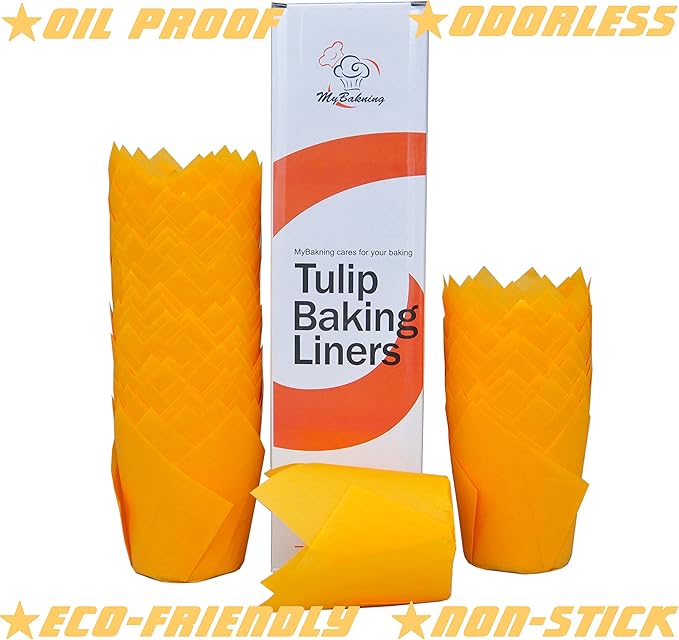 Orange color Large size Tulip Baking Cups 2-1/4"(Base diameter) x 4"(Wall height) Parchment paper baking cupcake Muffin liners, Case of 130 pcs