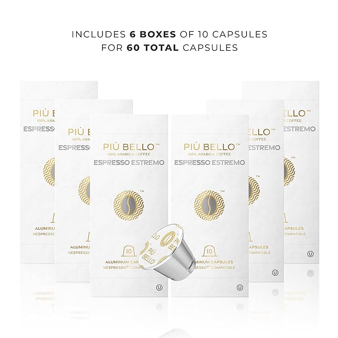 Piu Bello Espresso Estremo Coffee Pods – Espresso Coffee Pods for Nespresso Original Machines – Compatible Capsules Pack – Rich & Balanced Taste – Strong Italian Espresso Flavor – Kosher Certified (60 Count, Single Flavor)