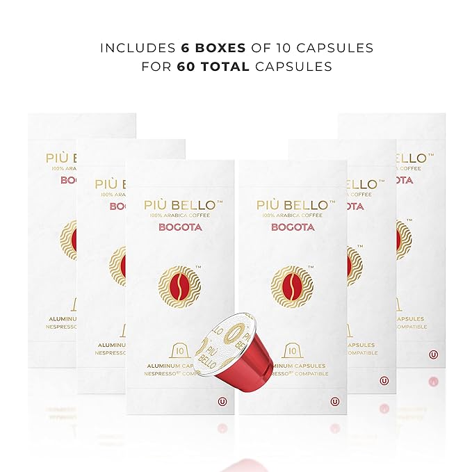 Piu Bello Bogota Espresso Coffee Pods for Nespresso Original Machines – Compatible Capsules Pack – Rich & Balanced Taste – Strong Italian Espresso Flavor – Kosher Certified (60 Count, Single Flavor)