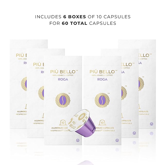 Piu Bello Roga Espresso Coffee Pods for Nespresso Original Machines – Compatible Capsules Pack – Rich & Balanced Taste – Strong Italian Espresso Flavor – Kosher Certified (60 Count, Single Flavor)