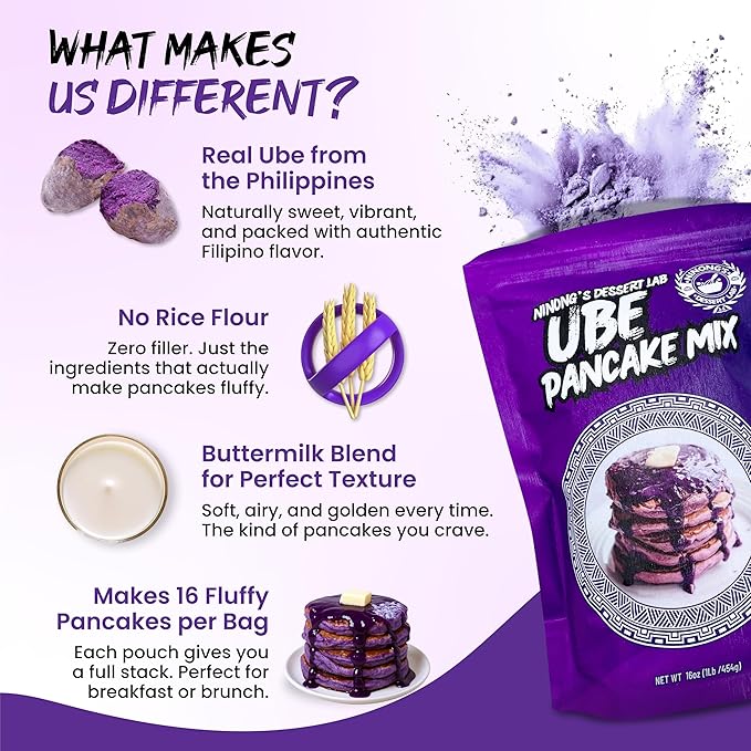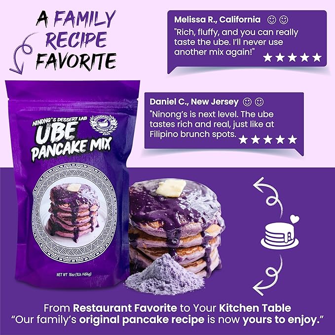 - LOVE AT FIRST BITE: We guarantee you'll love the ube pancake mix as much as we do! Get your 1lb bag of ube pancake mix today!