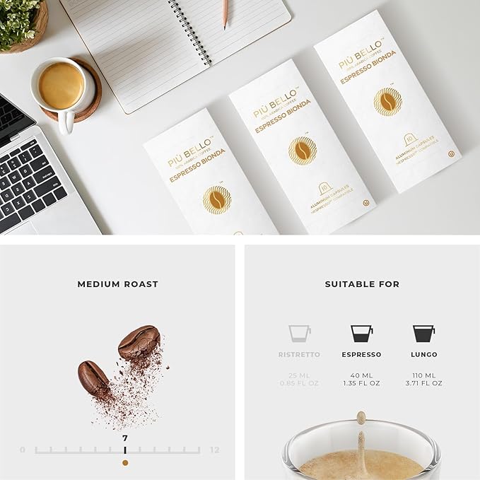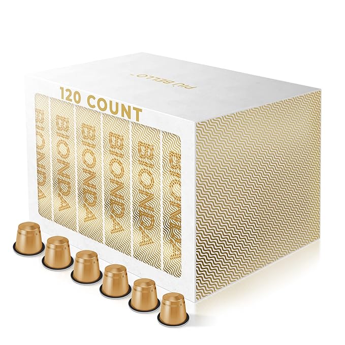 Piu Bello Coffee Pods - Nespresso Machine (Original) Compatible Capsules Pack - Rich & Balanced Taste - Strong Italian Espresso Flavored - Kosher Certified (120 Count Single Flavor) (Espresso Bionda)