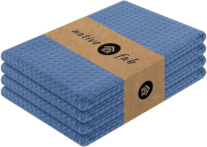 Native Fab Cotton Kitchen Towel with Hanging Loop 16x26 inches, 4-Pack, Waffle Weave Kitchen Towels for Cleaning Drying, Washcloths Soft & Absorbent Cloth Rags, Bar Towel, Dish Cloth, Sky Blue