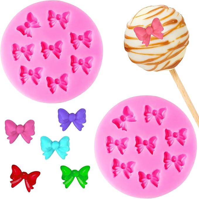 Bow Fondant Molds, AIMEIKI 2 Pack Mini Bows Silicone Fondant Molds Bowknot Candy Chocolate Mold for DIY Cake Decoration