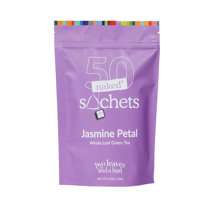 Two Leaves and a Bud Jasmine - 50 Naked Tea Sachets, Whole Leaf Green Tea in Eco-Friendly Unwrapped Compostable Sachets, Resealable Bag, 50 Count (Pack of 1)