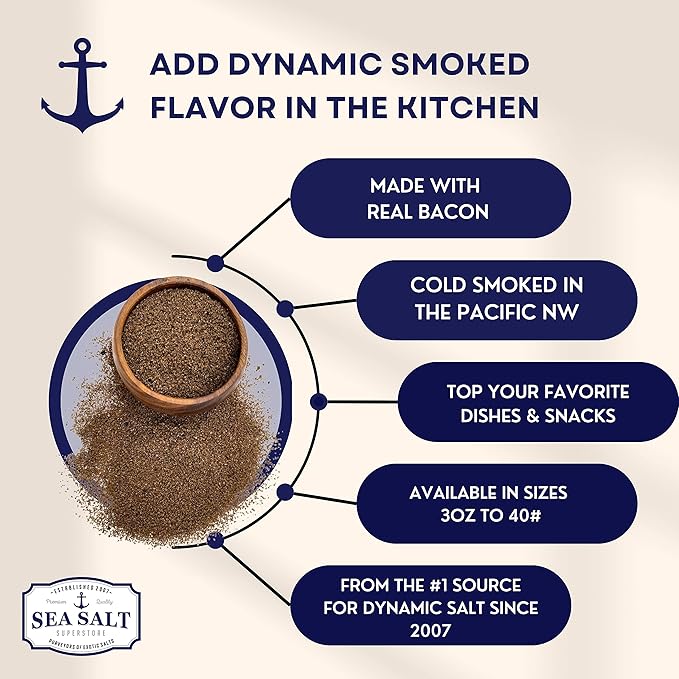 - Crafted for Every Kitchen: Designed for home cooks and professional chefs, our applewood-smoked bacon salt seasoning delivers restaurant-quality flavor. Elevate everyday meals and gourmet creations with Sea Salt Superstore's premium quality salts.
