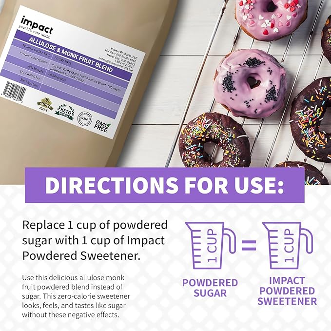 - Indulge in Sweetness without Calories: Savor the sweet without worrying about your calorie count with Impact Powdered Sweetener. It's the guilt-free way to enjoy sweetness.