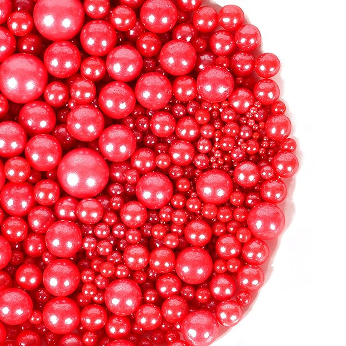 - ✨PACKAGE INCLUDES: 1 edible bottle of Red pearl sugar, 130g/4.58 oz. The main ingredients of sugar pearls are: sugar, beetroot, spirulina, carnauba wax, gluten free, nut free.