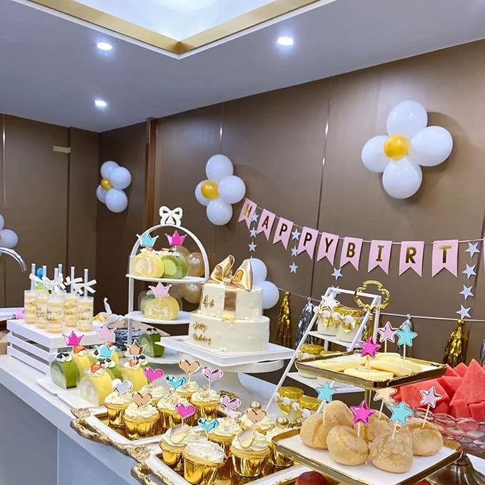 - ♕ Including: A total of 30 cake decorations. glitter Love star, glitter crown, glitter star cake toppers.