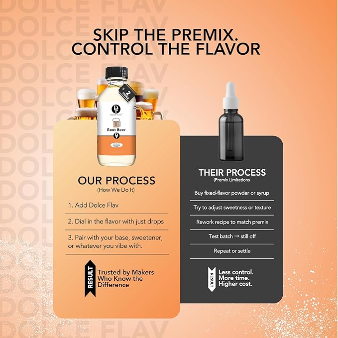 - Commitment to Flavor Excellence: Our root beer flavoring, free of alcohol, sugar, and dyes, and proudly made in the USA, is a crucial addition to your culinary repertoire. Whether you're preparing savory barbecue dishes, root beer-infused baked goods, soda-themed popsicles, or creative cocktail mixers, we're dedicated to enhancing your culinary experiences with our premium root beer extract.