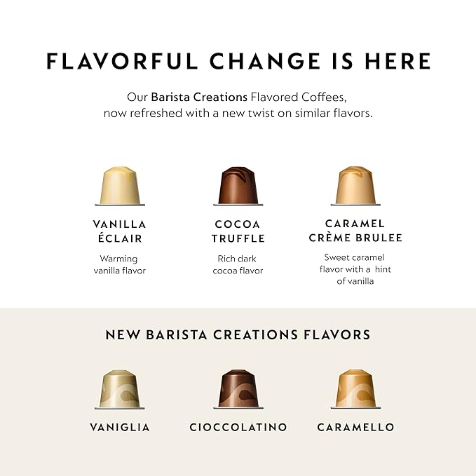 - SAVOR WITH MILK: As a cappuccino, this Nespresso flavored coffee blend gains creaminess and develops more biscuity, caramel and nutty notes on top of its vanilla flavor