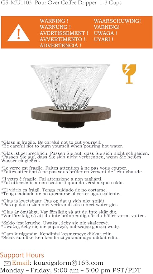 - 【Safe material】The filter is made of borosilicate glass with a walnut handle. The material is safe and odorless, high temperature resistant and easy to clean, BPA free.
