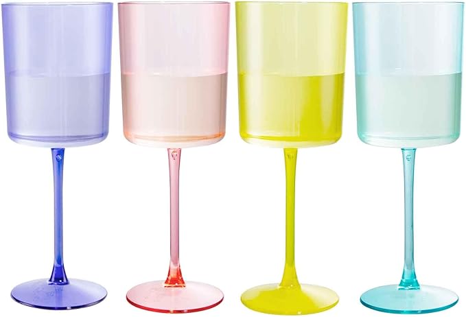Ciaell 4 Pack Plastic Wine Glasses - 10 Oz Plastic Wine Glasses with Stem - Disposable Wine Glasses Perfect for Parties & Weddings & Poolside & Outdoors & Camping(Pink Green Purple Yellow)